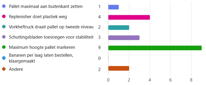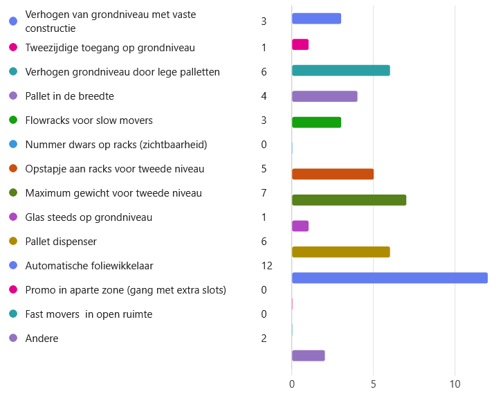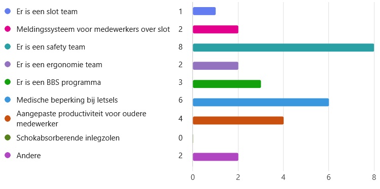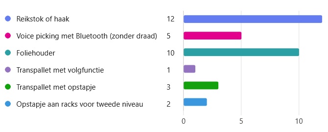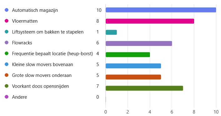 Op 1 oktober openden we de maand van de ergonomie met een online intervisie over "Ergonomie in logistieke magazijnen". Hierin werden ergonomische oplossingen overlopen bij de verschillende taken in de logistiek. De focus ligt daarbij wel op de manuele handelingen. Hieronder vind je een overzicht van de besproken praktijken en in welke mate ze van toepassing zijn bij de deelnemers: